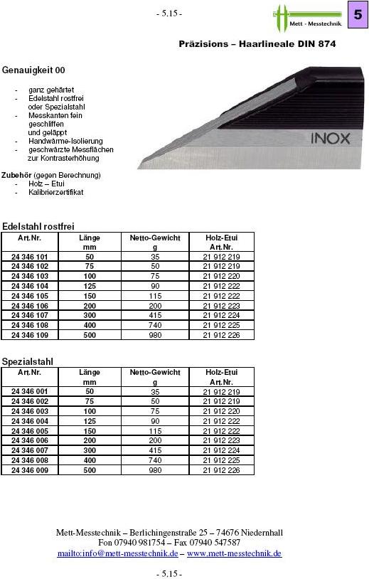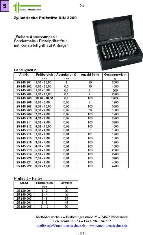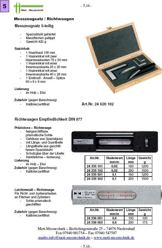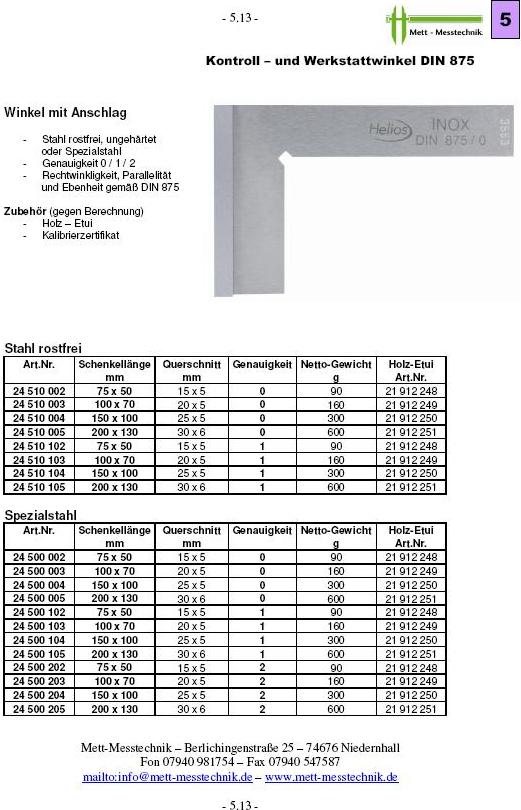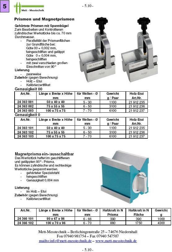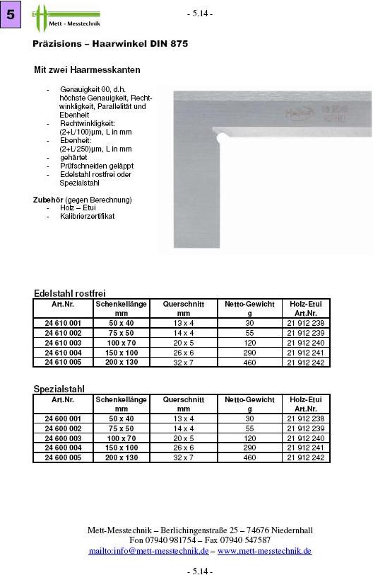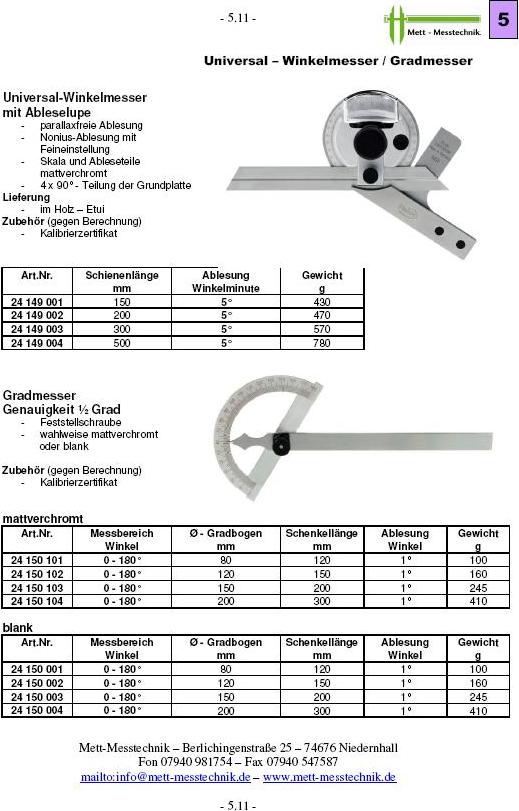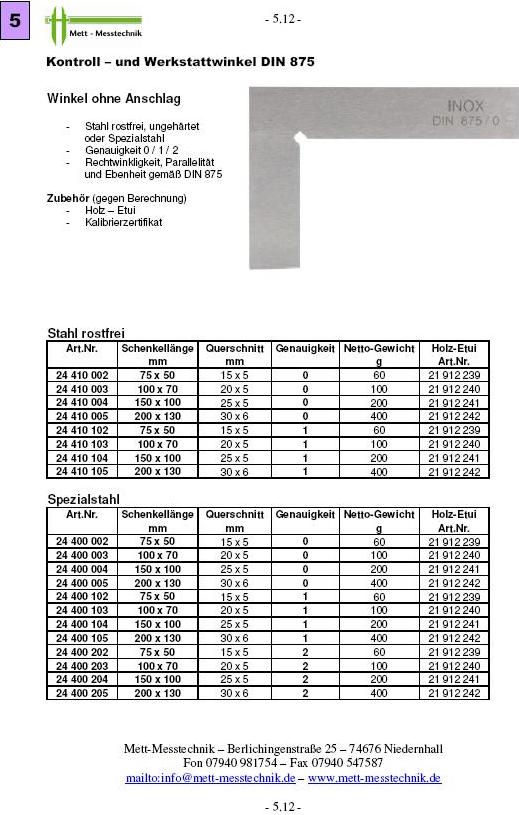 Wir bieten Grenzlehren, Gewindelehren, Prüfstifte, Parallelunterlagen, Prismen, Winkel- und Gradmesser, Kontroll-, Werkstatt-, Haarwinkel und andere Messzeuge. Seite 5.1 bis 5.16