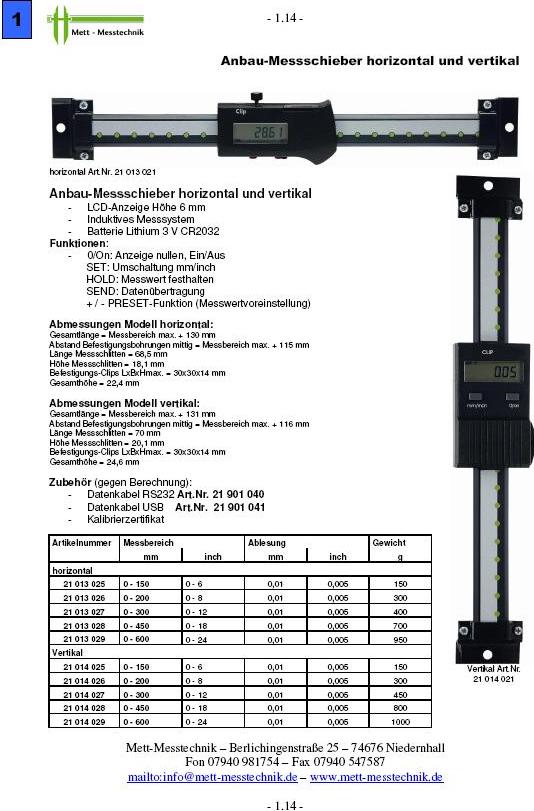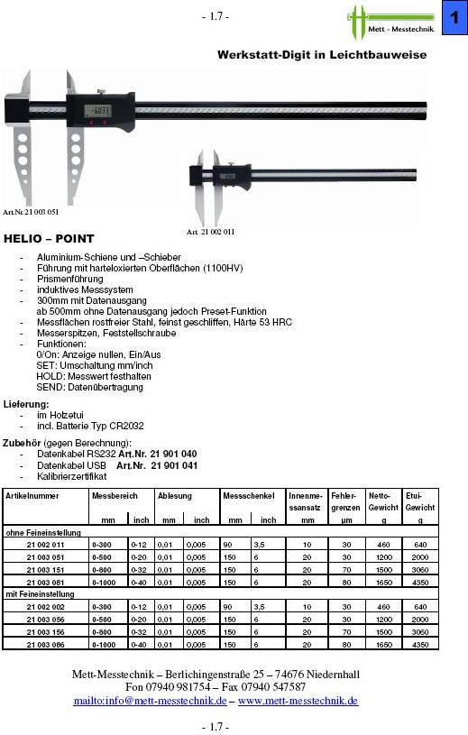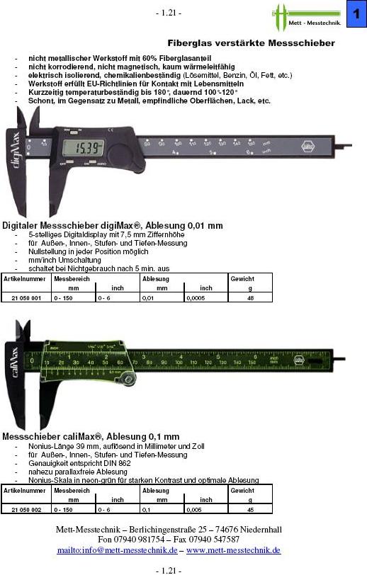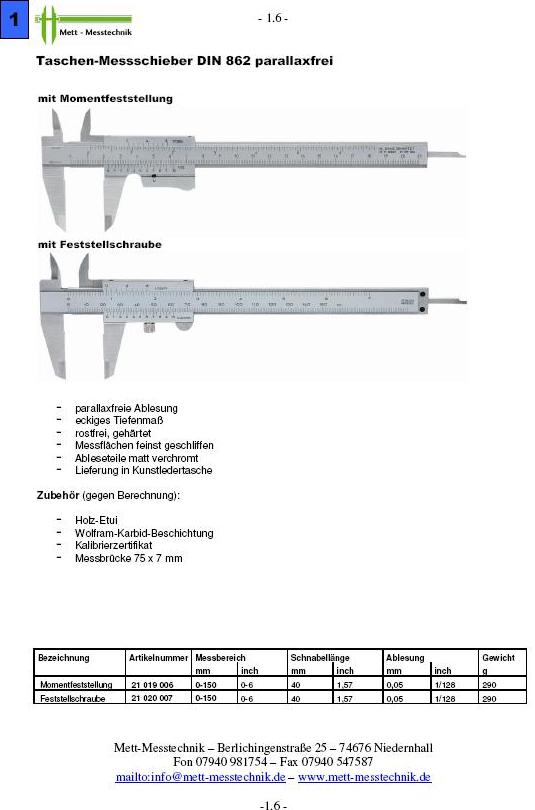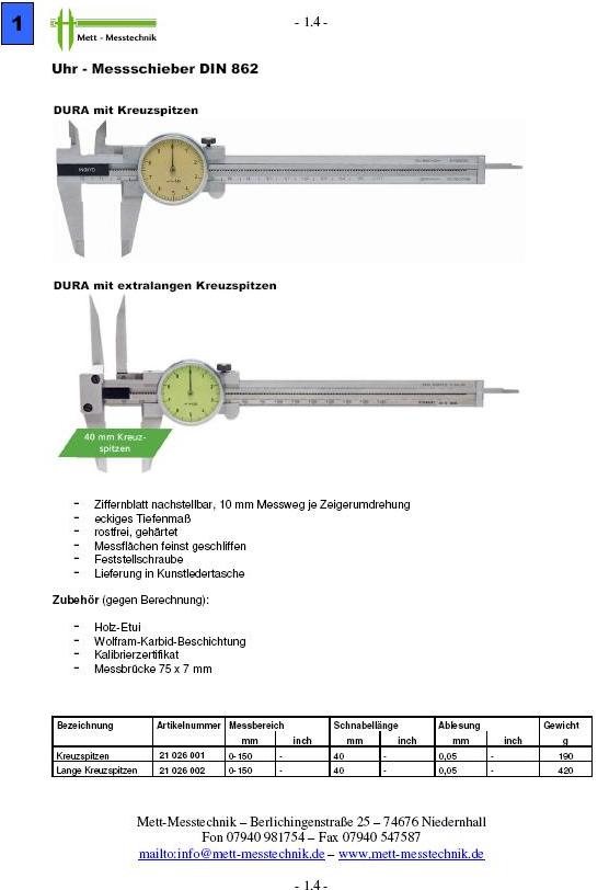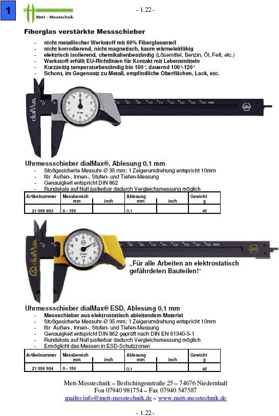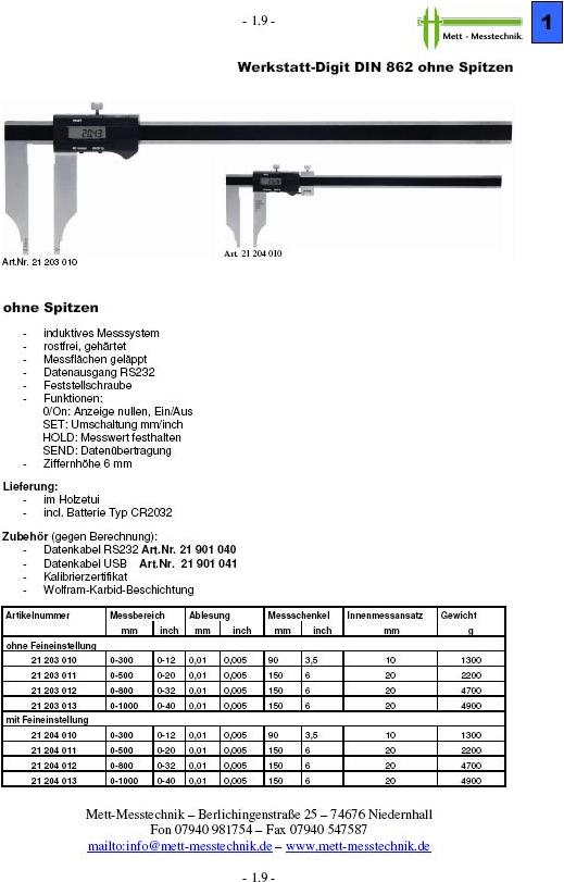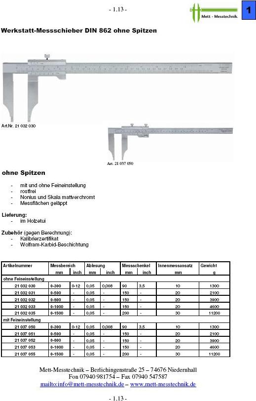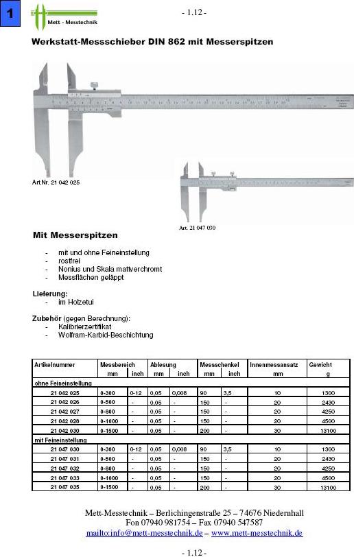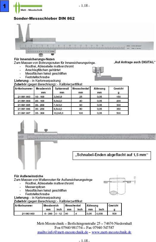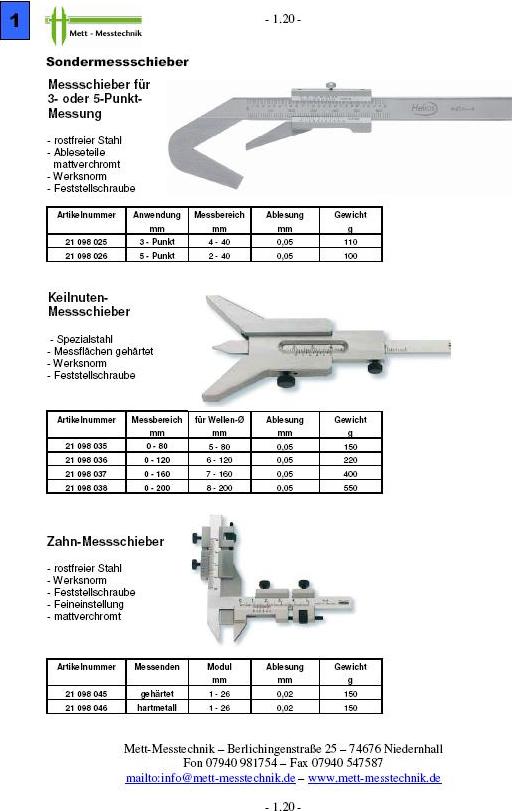 Wir bieten analoge und elekronische Messschieber, Sondermessschieber, Werkstattmessschieber für nahezu jeden Anwendungsbereich, auf Anfrage auch Sonderanfertigungen. Seite 1.1 bis 1.22