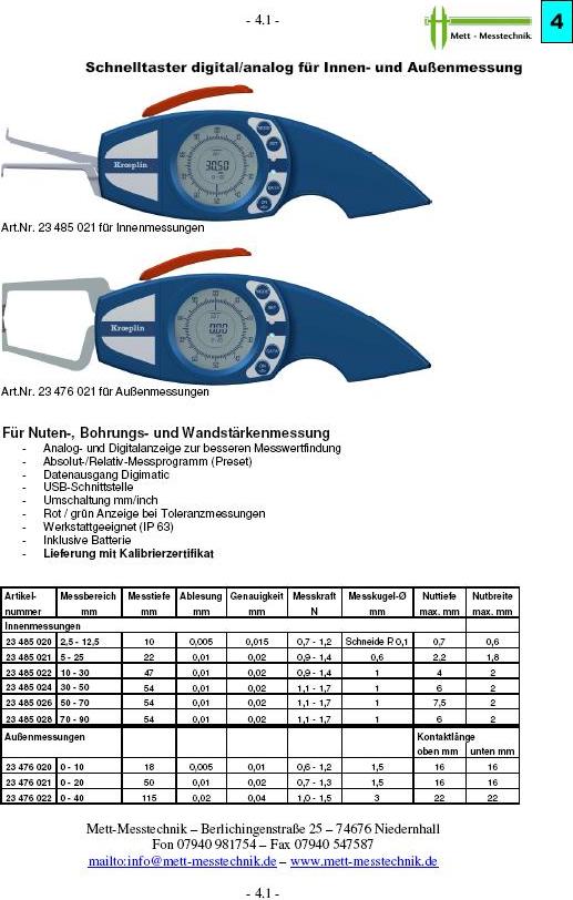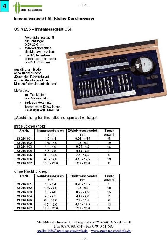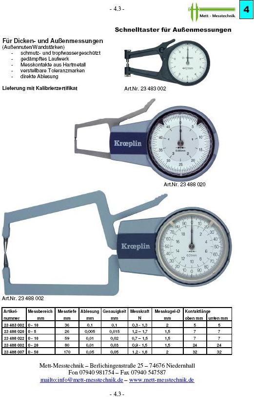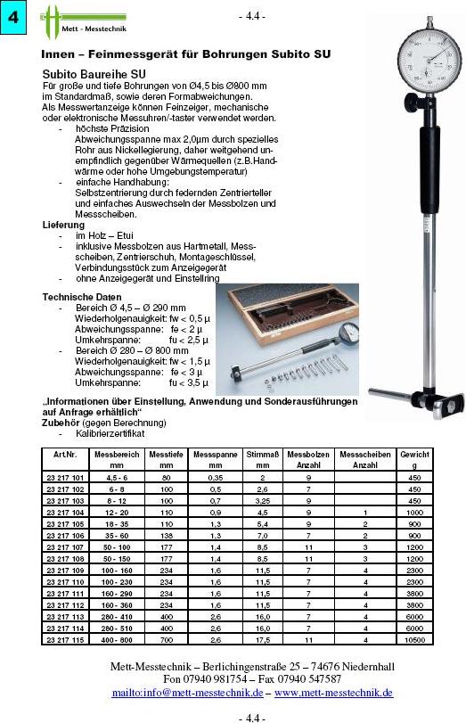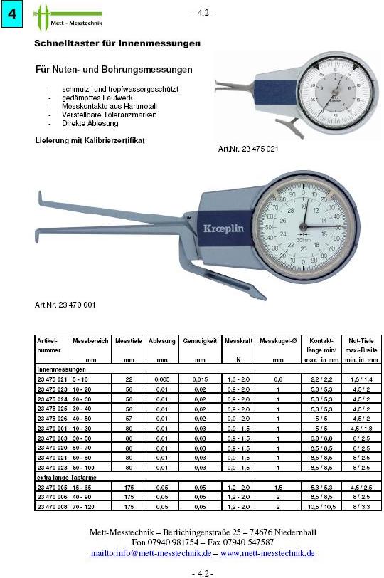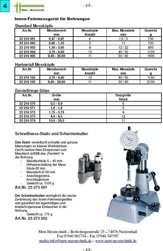 Wir bieten Ihnen viele Varianten an Messtastern und Innenmessgeräten. Seiten 4.1 bis 4.8