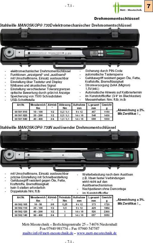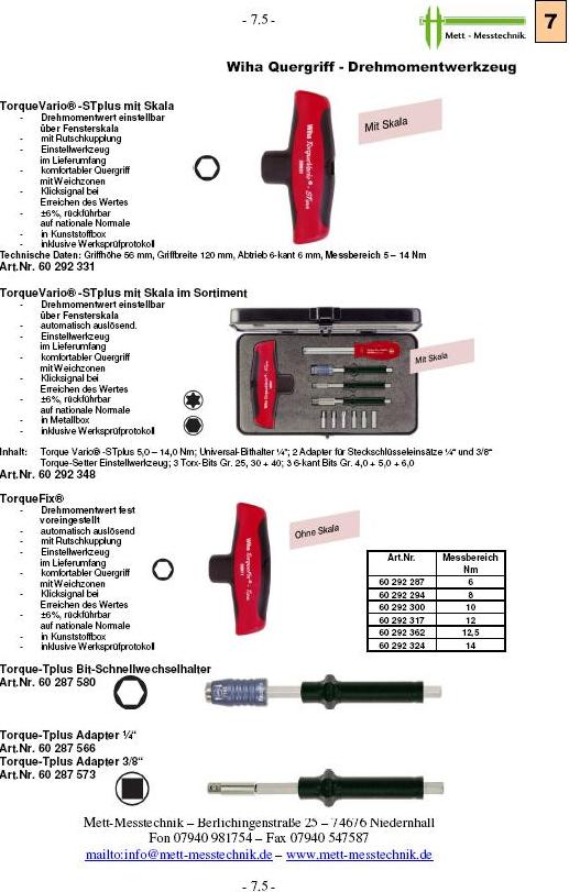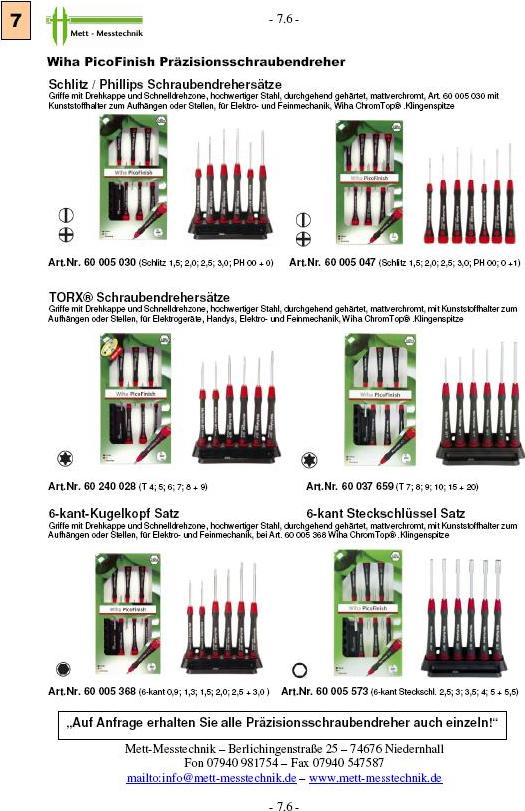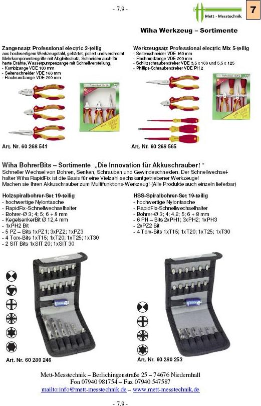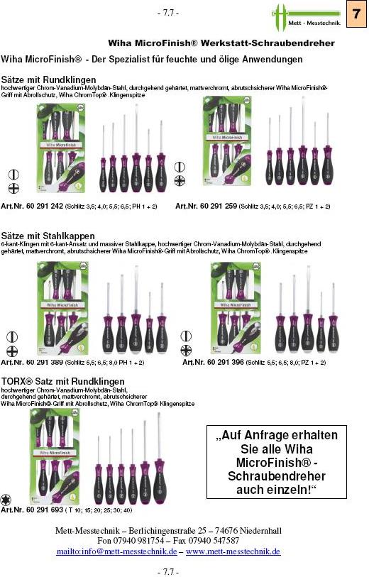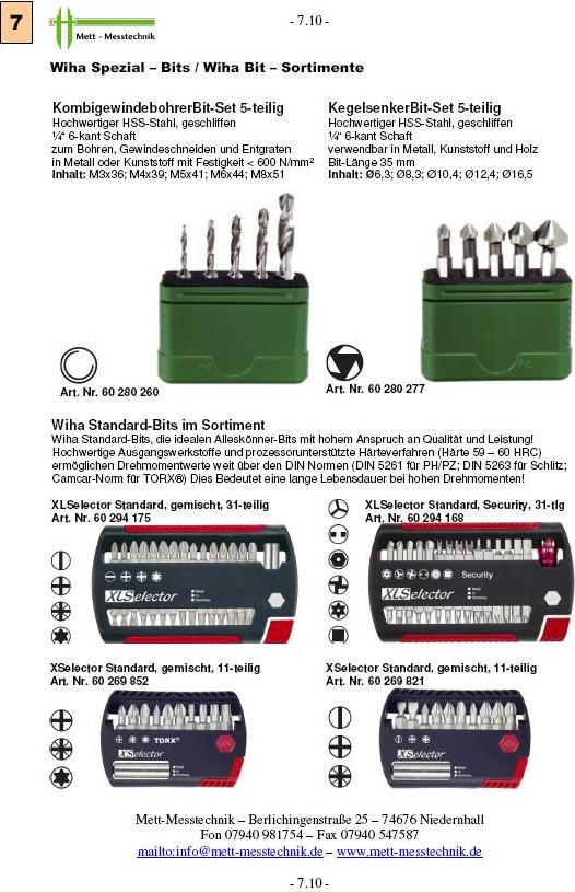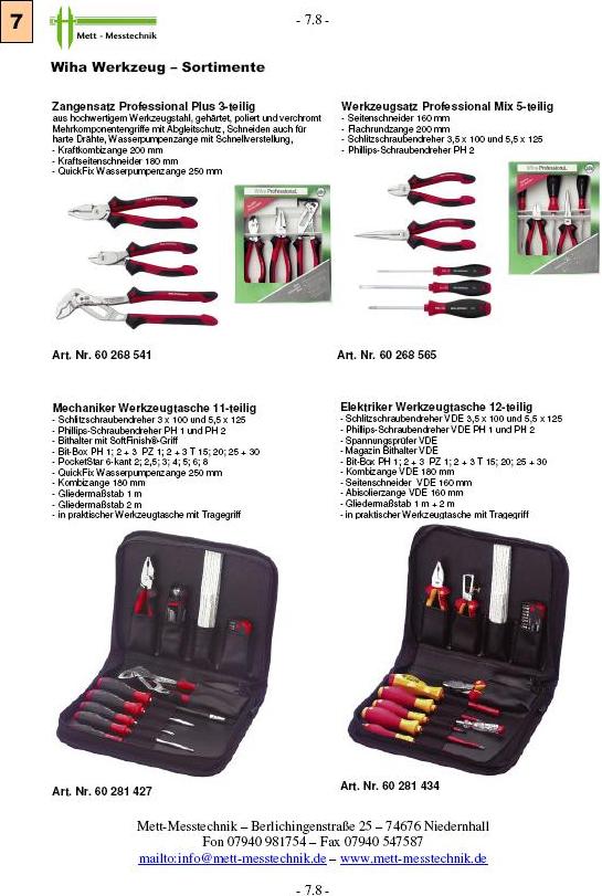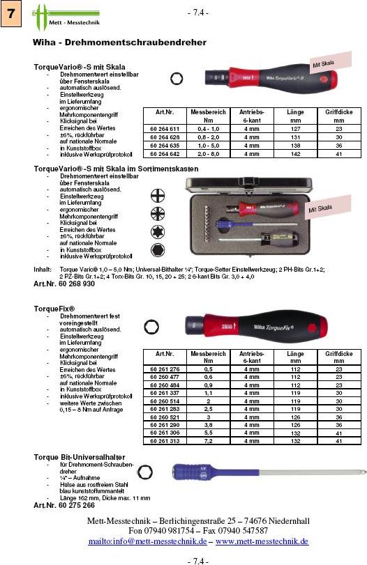 Wir bieten Qualitätswerkzeuge von Wiha und Stahlwille, z.B. Drehmomentschlüssel, Drehmomentschraubendreher, Steckschlüsselkasten, Werkstattschraubendreher, Werkzeugsortimente, Bits, Bitwerkzeuge, ... . Seite 7.1 bis 7.10